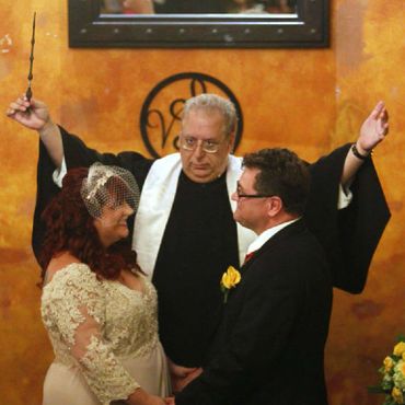 It would be physically impossible for me to include pictues from every wedding I've officiated over the past 28 years. That's approximately 3,300 wedding. These are just some selected pictures that , I hope will give you an idea of the joy I bring to every wedding ceremony.